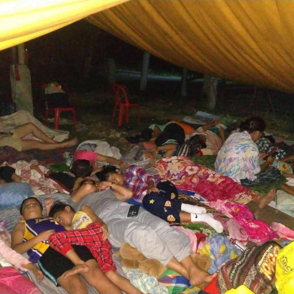 Many people slept in open fields or by the roadside for fear of the aftershocks, attempting to cover themselves with blankets, umbrellas or plastic sheeting as the rain from an approaching typhoon soaked them and their few belongings.